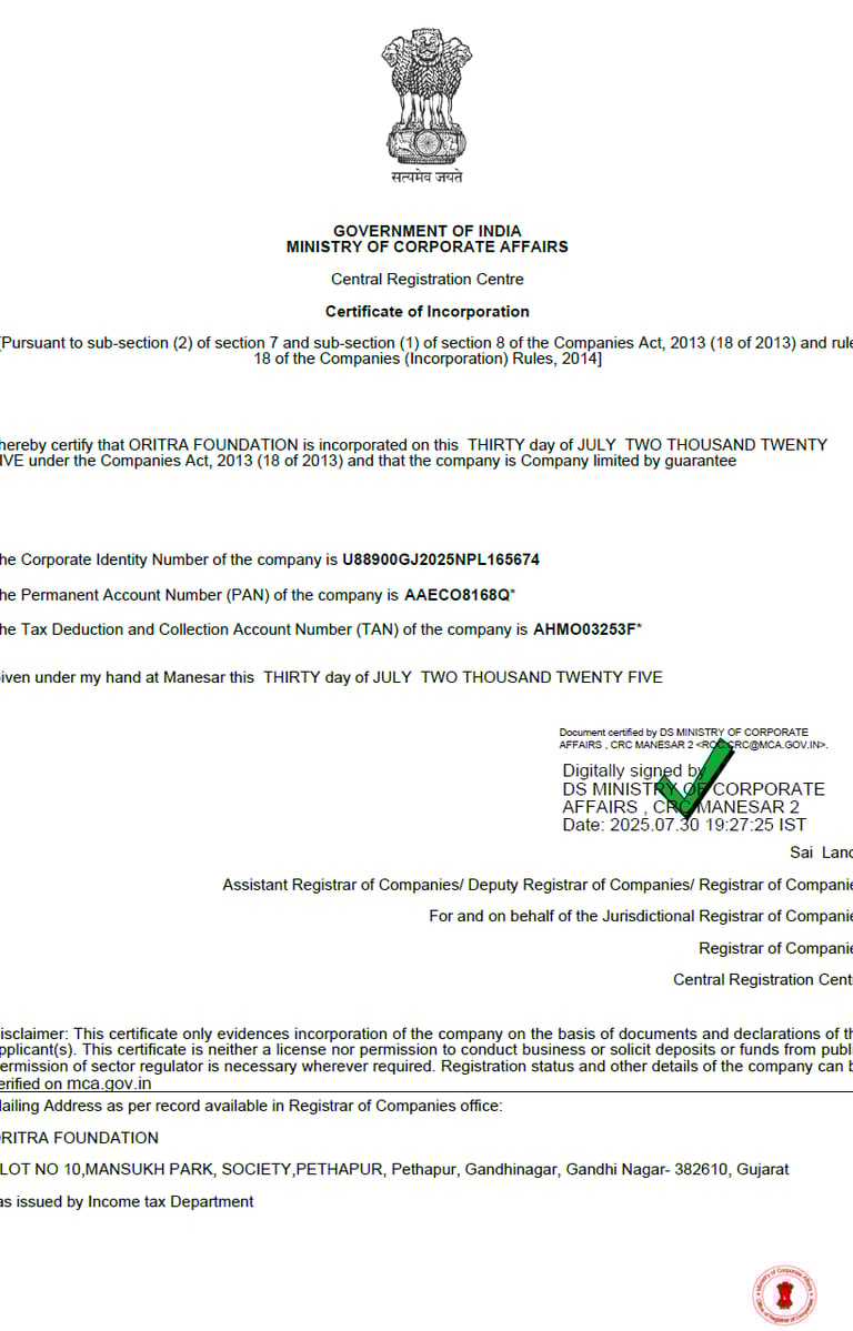 Oritra Foundation was born not from a plan — but from a moment that touched the heart.